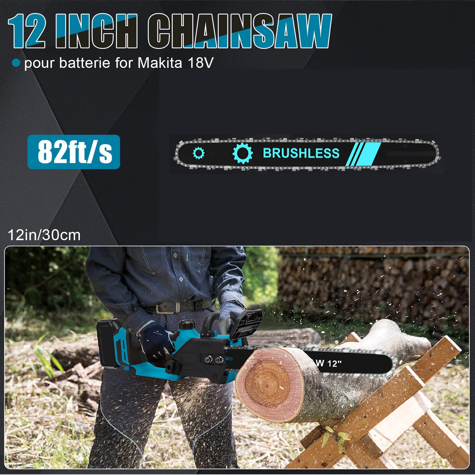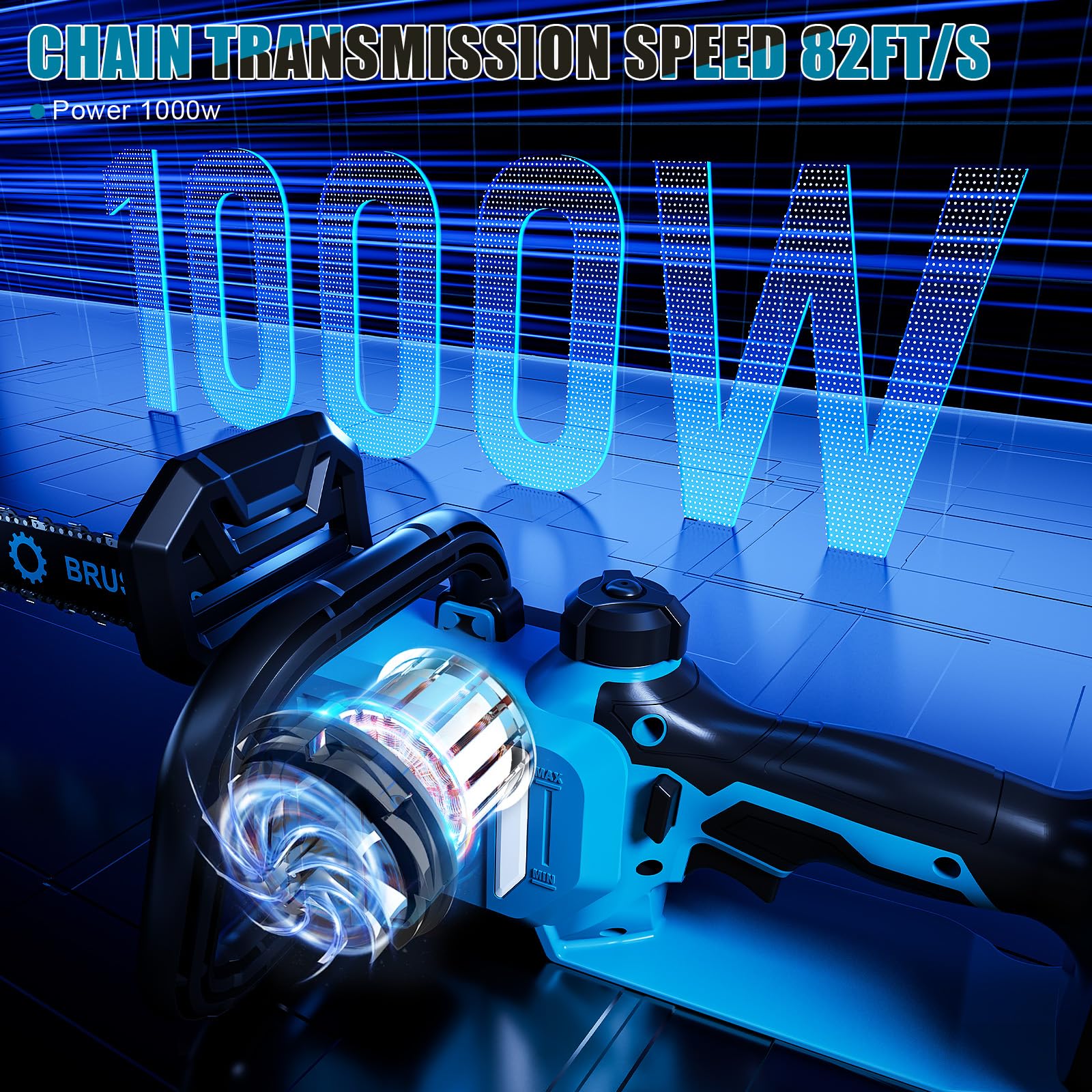 - Leistungsfahig langlebig - Akku-Kettensäge design mit Kraftvoll bürstenlosen Motor im Inneren, bürstenlose Motor erhöhen die Ausgangsleistung und reduzieren den Verschleiß, Der 1000W/21V Motor mit einer Drehzahl von 30.000 U/min, für mehr Ausdauer, längere Lebensdauer. Elektrische Sägen sind weniger anfällig für Erwärmung während des Gebrauchs, mini-kettensäge ist effizienter, leichter, langlebiger, sicherer, Perfekt für Anfängern, Frauen und Senioren