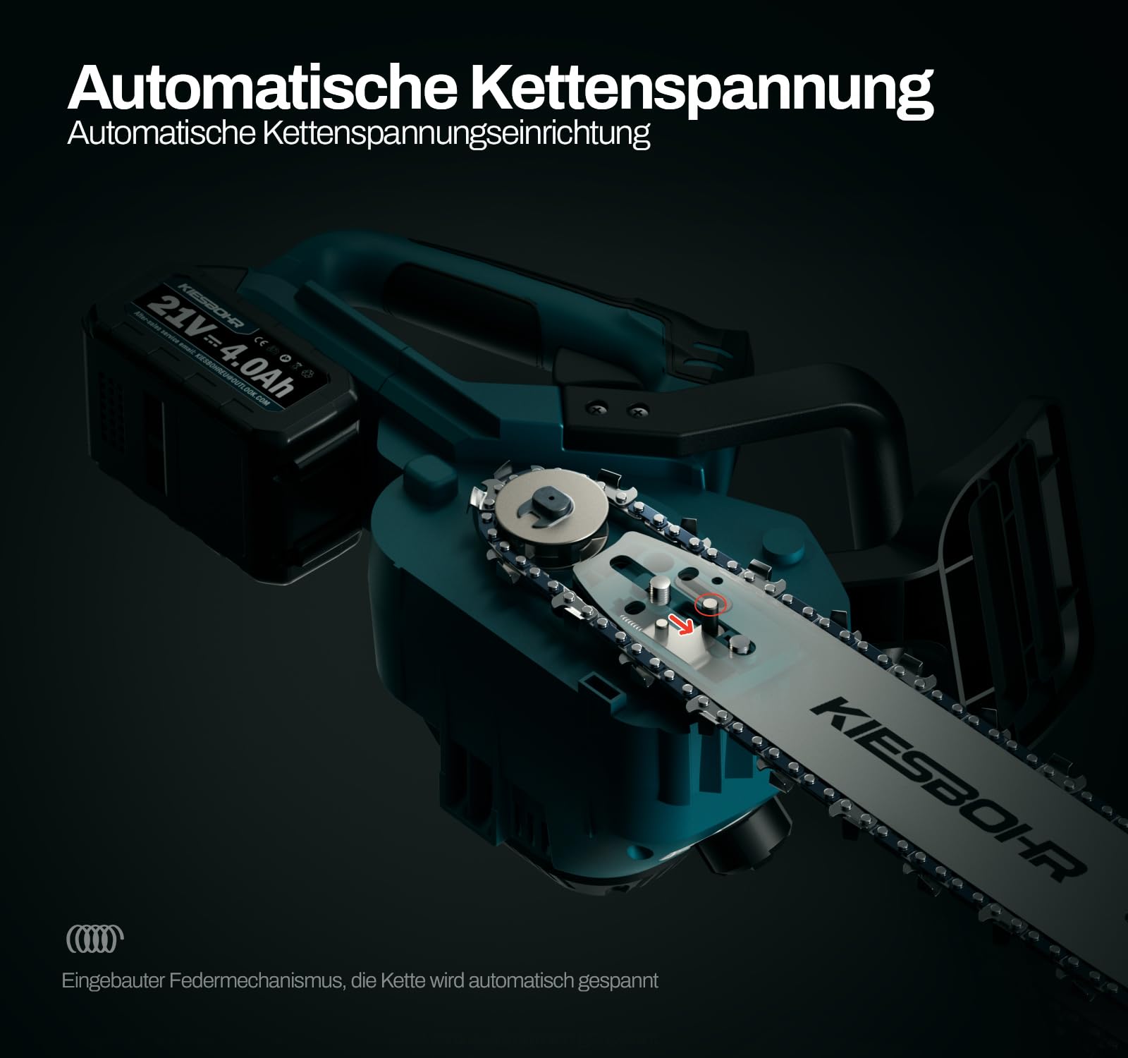 - Automatische Kettenspannung: Mit der neuesten automatischen Kettenspannung müssen Sie die Kette während der Arbeit nicht mehr häufig manuell spannen. So sparen Sie Zeit und können sich voll und ganz auf Ihre Arbeit konzentrieren.